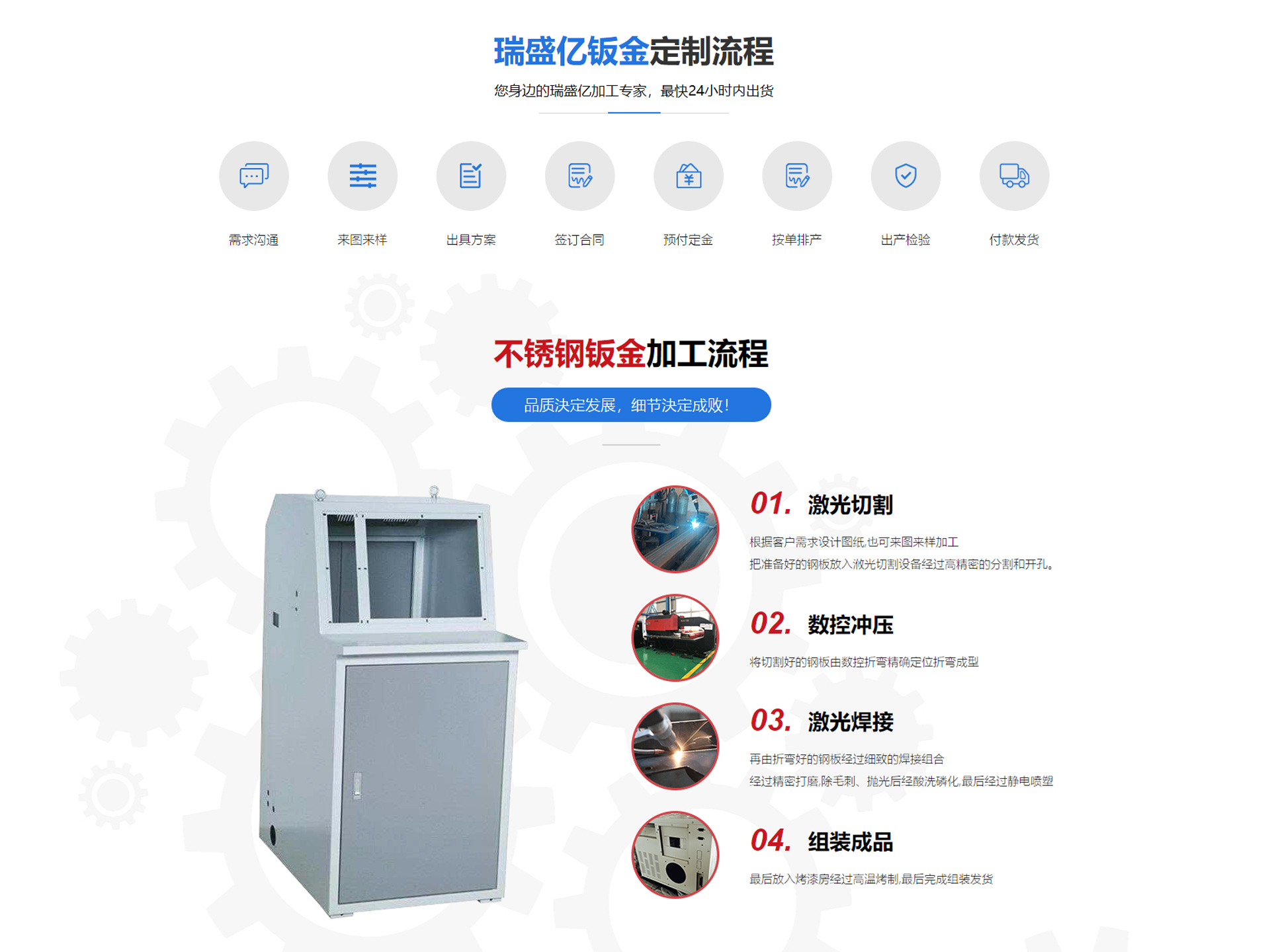 多年不銹鋼鈑金加工,不銹鋼產(chǎn)品加工制造經(jīng)驗(yàn),主要承接鈑金加工、機(jī)柜箱、設(shè)備機(jī)架、不銹鋼制品等